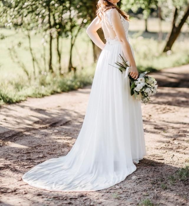 Suknia ślubna 34/36 muślin koronka gołe plecy wygodna