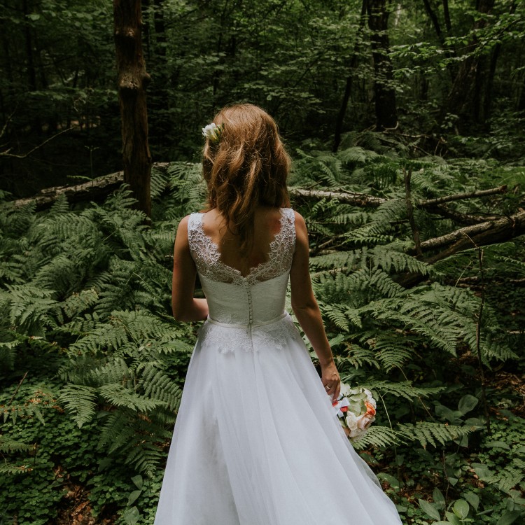A także halkę z kołem, dzięki któremu suknia jest delikatnie rozkloszowana.