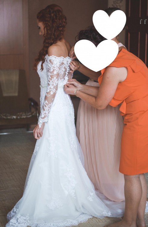 Rozmiar z metki 38, była zwężana. Ja noszę rozmiar 36 i była idealna. Sukiena posiada długi koronkowy tren z możliwością podpięcia na salę, oraz głęboki dekold na plecach. Suknię należy oddać do czyszczenia, mogę to zrobić osobiście jednak za dodatkową dopłatą do ceny maximum 200 zł. Wartość sukni oraz dodatków w granicach 4500zł a Ty możesz mieć ja za 1500zł. Zadzwoń a napewno się dogadamy. Napisz, zadzwoń pod numer 514 577 022 wyślę więcej zdjęć.
