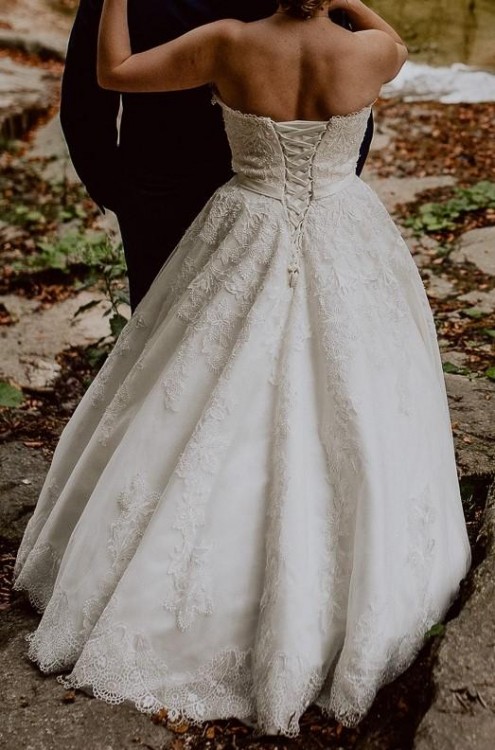 Dół sukni zdobi koronka, którą także można odpruć.