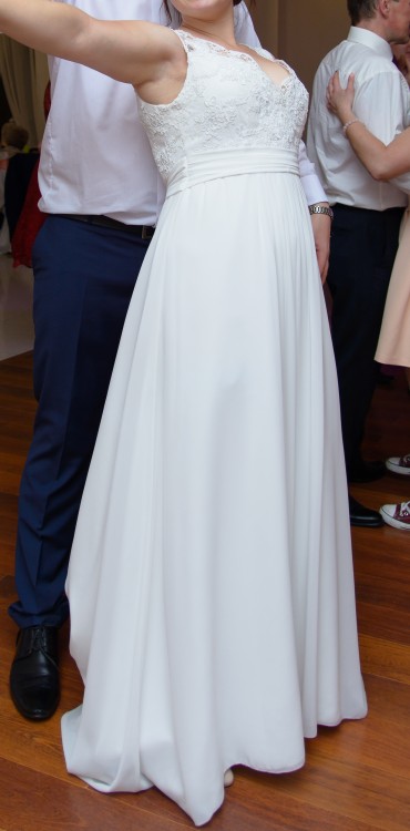 Wysoki stan i zwiewny dół sukni sprawia, że będzie idealna również dla CIĘŻARNEJ Panny Młodej !!