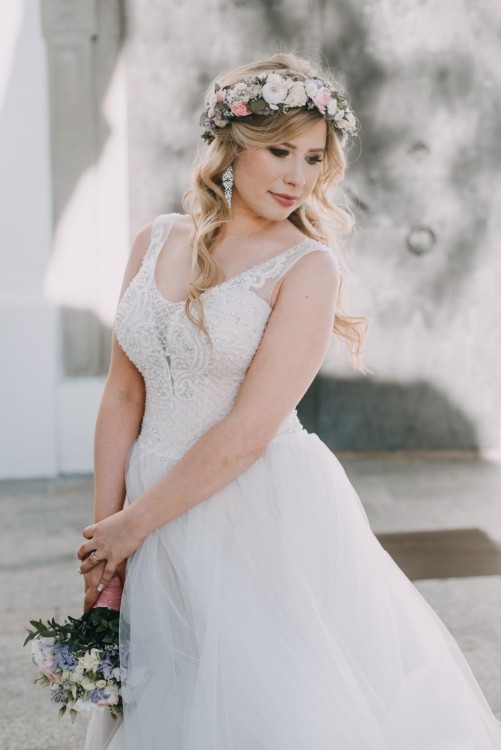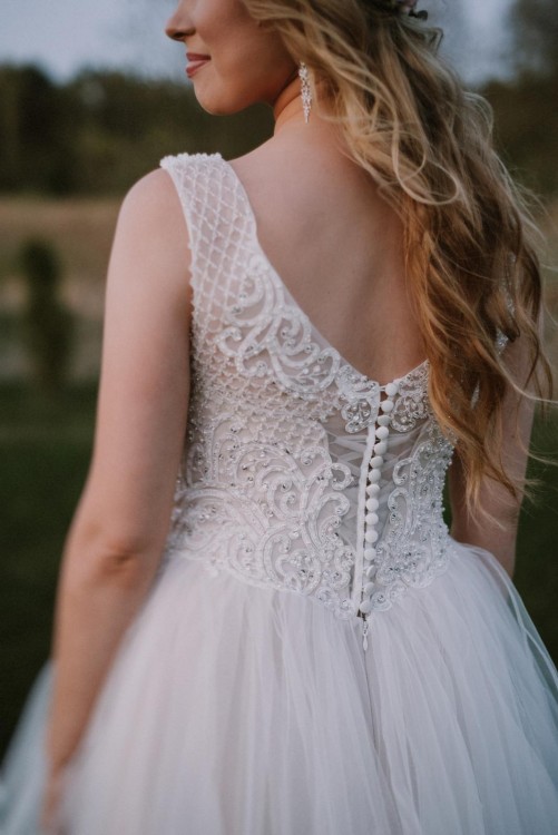 Sprzedam przepiękną suknię ślubną model Indiana (z kolekcji wiosna/lato 2018), z salonu sukien w Białymstoku, z przepięknym dopinanym trenem (w całości odpinany na zabawę weselną, super opcja) w kolorze bardzo delikatnego pudrowego różu wewnętrzna warstwa i na to góra koraliki , dół tiul. 4 warstwy tiulu, tafta francuska w kolorze przyprudzonego pudrowego różu, pozstałe w kolorze Ivory. Rozmiar 38/40, dopasowanie sznurowaniem gorsetowym z tyłu sukienki (schowane pod guziczkami). Nie wymaga nakładania biustonosza, wszystko jest idealnie dopasowane. Dopasowana na osobę o wzroście 164+8cm obcasa. Możliwość skrócenia. Więcej zdjęć czy informacji chętnie prześlę zainteresowanym Pannom Młodym mailowo :) kosztowała z trenem i halka z kołem ok.5 tys.zl. a jestem pewna że jeszcze zachwyci kogoś tak bardzo jak mnie :) serdecznie zapraszam! Zdjęcia realne i od fotografki, bez retuszu, nie katalogowe, nie na modelce choć można poczuć się w niej jak modelka :) wszystkie pytania proszę kierować drogą mailową. Zapraszam do mierzenia i zakupu :)