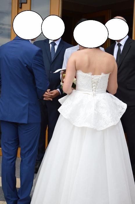 Witam sprzedam śliczna suknie model boogie. Suknia zakupiona w salonie w czerwcu. Rozmiar 36/38, wzrost 170cm. Gorset wiązany, posiada również dodatkowa zapinke aby suknia lepiej się trzymala. Baskinka jak i gorset pokryte piękna koronka. Suknia szyta w linie A. Serdecznie zapraszamy do kontaktu. Cena podlega negocjacji :)