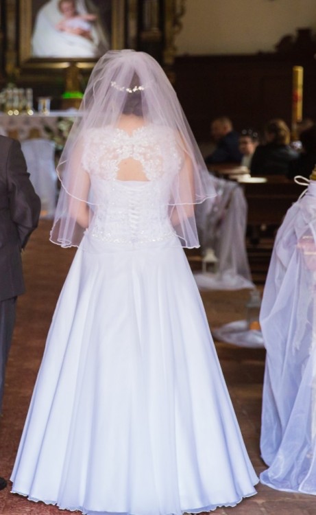 Sprzedam suknie slubna rozmiar 40-42 z kolem, na wzrost 165 + okolo 5 cm obcas.