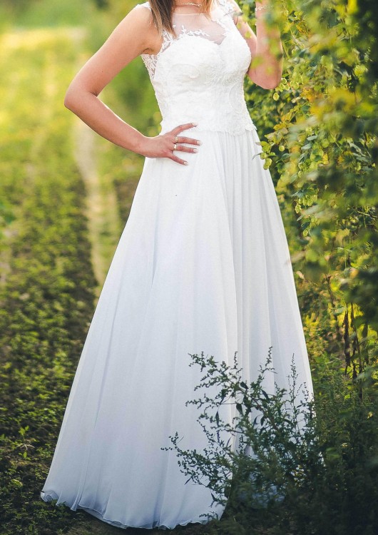 mam do sprzedania suknię ślubną szytą na miarę w salonie Impressja w Załazach. Suknia będzie pasować na wysoką panią o rozmiarze 40/42. Suknia włożona dwa razy: na ślub i do sesji zdjęciowej.