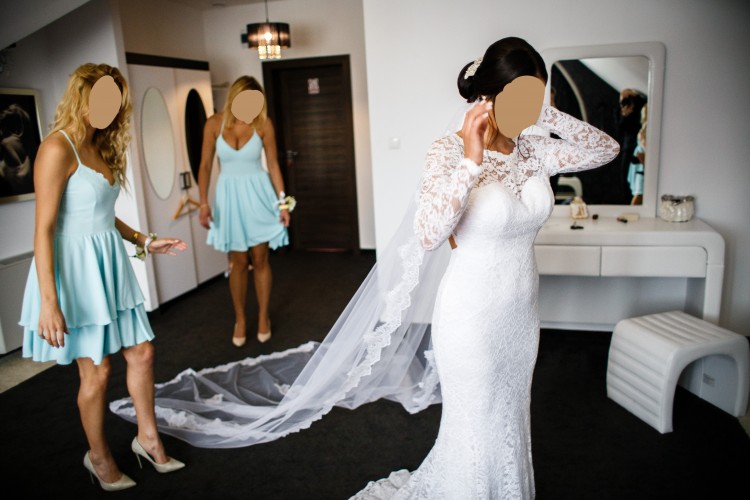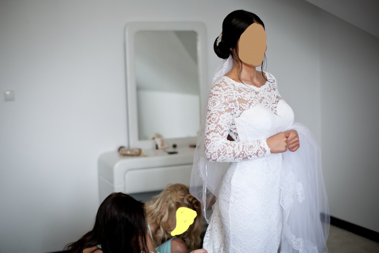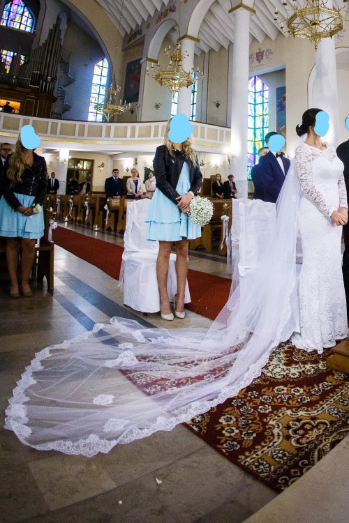 Posiadam na sprzedaż także 3 metrowy welon wykonany z tej samej koronki co suknia.