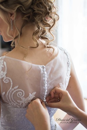 Witam, mam do sprzedania piękną, koronkową suknię ślubną 2017 szytą w salonie Kareen. Fason-litera A. Rozmiar S/M, suknia szyta na wzrost 165cm + 7cm obcas, założona dwa razy (ślub i sesja w plenerze), bardzo wygodna i lekka, z tyłu zapinana na guziczki, pięknie się prezentuje, jest po czyszczeniu, zapraszam do przymiarki:)