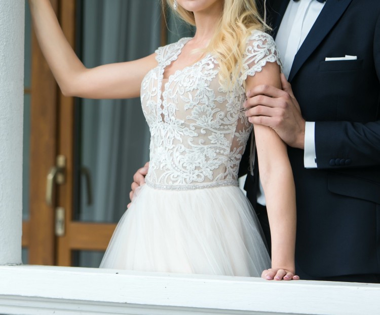 Suknia była uszyta w profesjonalnym salonie sukien ślubnych z wykorzystaniem wysokiej jakości tkanin. Materiały z których została uszyta nie są dostępne w sklepie zostały sprowadzone od producenta na potrzeby indywidualnego projektu. Wzór sukni ślubnej jest zestawieniem dwóch modeli sukien jakie mierzyłam w salonie