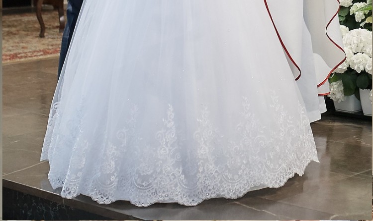 Witam, sprzedam piękna suknię ślubną typu princessa w rozmiarze 36/38. Sukienka to model z katalogu z roku 2017 - nissa II biała, zakupiona w salonie "Młoda Para". Suknia jest w stanie idealnym, nie zniszczona, jednoczęściowa z tyłu zapinana na suwak i guziczki, suknia posiada koło. Dół sukni oprawiony cudowną koronką. Szyta na wzrost 168 + obcas 12 cm. Cena katalogowa 2900 zł.