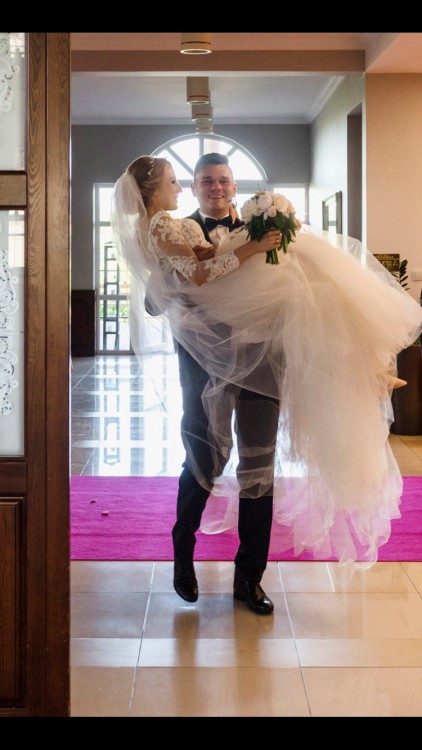 Sprzedam suknie ślubna z najnowszej kolekcji Skrzydła (2016/2017) z Atelier Sylwii Kopczyńskiej, zakupioną w salonie w Warszawie. Stan idealny, ubrana dwukrotnie w dniu ślubu (czerwiec 2017) i na sesję poślubna. Suknia szyta na miarę, jest projektem indywidualnym- góra koronkowa (odpowiednio ręcznie zagęszczana) z rękawem 7/8, dół tiulowy z beżową jedwabną podszewką. Dodatkowo posiadam tren składający się z 3 części-dopinany do jedwabnej podszewki. Suknia pięknie się układa i jest bardzo lekka, czułam się w niej wyjątkowo. Mój rozmiar to 36, wzrost 173cm, dopasowana do obcasów 7 cm. Cena sukni w salonie 6000zł ( posiadam rachunek do wglądu), dodatkowo mogę dołączyć 3 metrowy welon gratis - również zakupiony w Atelier Sylwii Kopczynskiej. Polecam przyszłym pannom młodym! Zachęcam do kontaktu telefonicznego osoby zainteresowane. Mozliwość przymiarki w Kielcach lub Końskich(woj. Świętokrzyskie).
