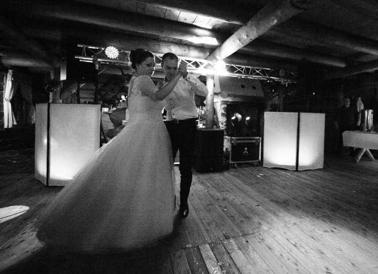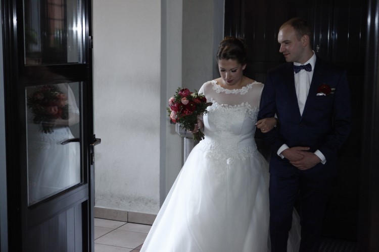 Góra wykończona koronką, pięknie eksponuje plecy. Dół wykonany z sześciu warstw tiulu (dwie górne są błyszczące, a pozostałe matowe). Błyszczący tiul dodaje sukni lekkości. Rękawki nie krępują ruchów, a są bardzo dobrym rozwiązaniem dla osób o pełniejszych kształtach ;). Dużym atutem sukni jest piękny tył, który jest wykończony koronką w kształcie litery V. Suknia pięknie prezentuje się w tańcu.