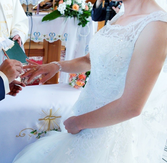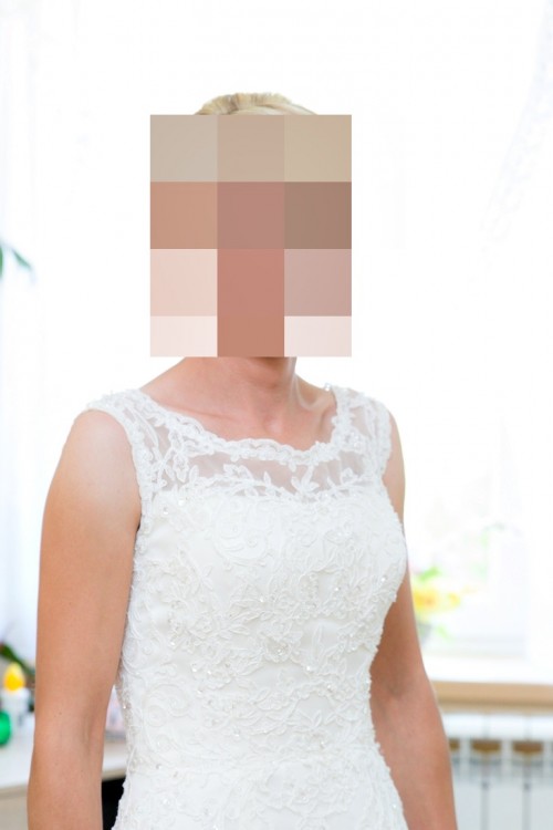mam do sprzedania piękną suknię ślubną Plus koło!. Wykonana z koronki, delikatnie zdobiona diamencikami.