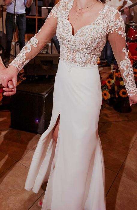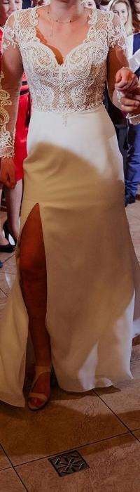 Witam, mam do sprzedania śliczną suknie ślubną, zakupioną w salonie Madonna w Krakowie, suknia przerobiona, wstawione jest rozcięcie na nogę prawą, zdjęcia nie oddają sukni na żywo, zapraszamy na oględziny. Cena do negocjacji. pozdrawiam