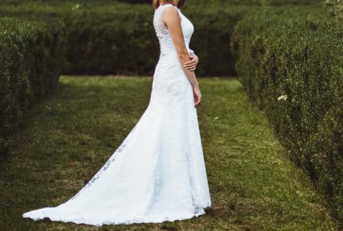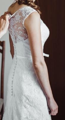 Mam do sprzedania koronkową suknię ślubną zakupioną w salonie. Stan idealny, kolor biały.