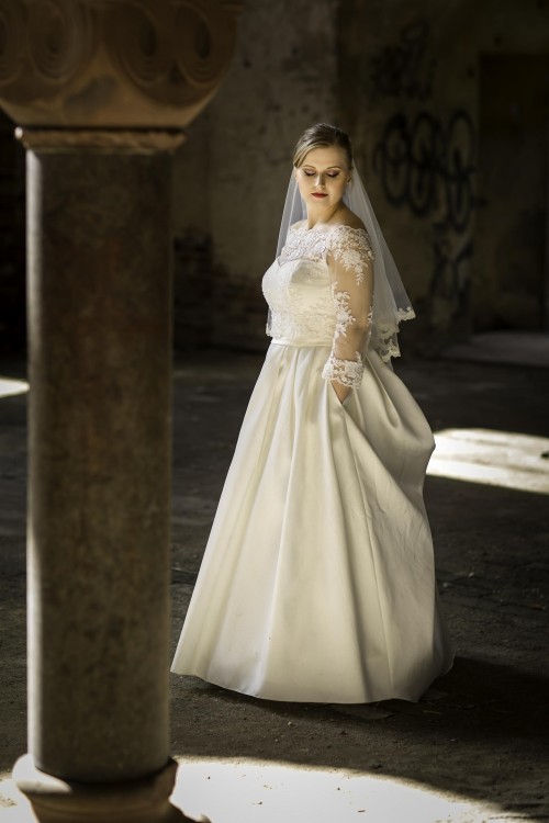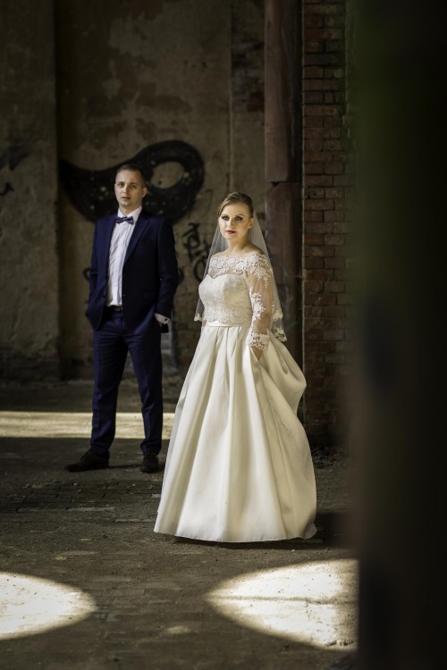Mam do sprzedania prześliczną suknie ślubną firmy Nessi Bolero Mysctic model 35/k48 (2016r) w rozmiarze 38/40. Suknia została dopasowana do wzrostu 162+10cm obcas. Sukienka posiada z tyłu sznurowanie dzięki czemu idealnie dopasuje się do naszej sylwetki. Dodatkowo posiada wszyty w gorset elastyczny pas, dzięki któremu sukienka nie zsuwa się podczas tańca (Idealnie dopasowana do talii). Dodam że jestem pierwszą właścicielką. Materiał sukni - Mikado, koloru perłowego.