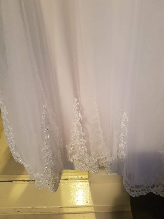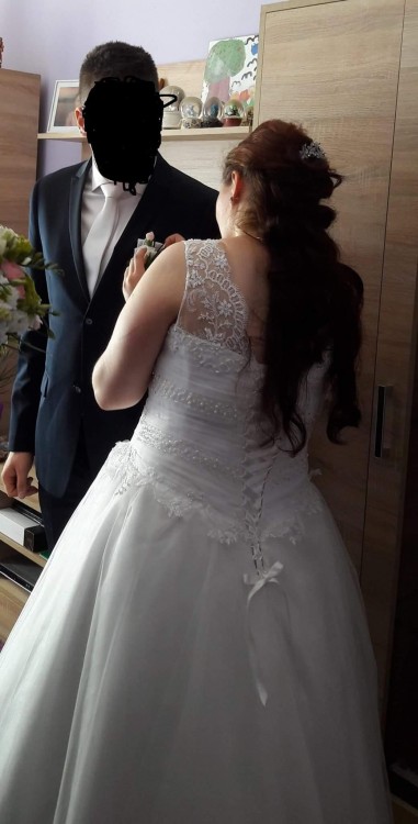 Sprzedam Suknie Ślubną szyta na miarę w bardzo dobrym stanie, sukienka jest na kole, zakupiona została w salonie sukien ślubnych Wanda w Częstochowie w czerwcu 2016r. Sukienka jest piękna, lekka i wygodna.Sukienka posiada połyskujący mieniący się tiul (brokatowy). Polecam