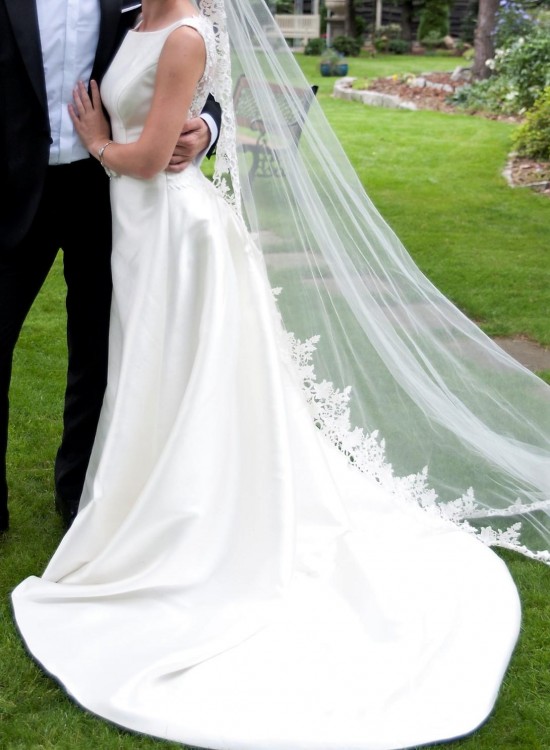 Do sukni dorzucam welon długi i krótki Welony w stylu klasycznym wykończone koronką identyczną jak na plecach.