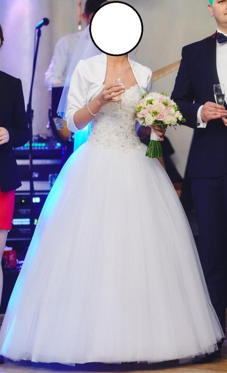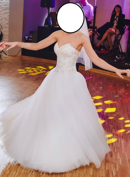 Suknia była założona raz w dniu ślubu. Nie posiada żadnych uszkodzeń. Została wyprana i jest gotowa do założenia.
