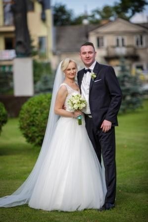 Sprzedam suknię ślubną w rozmiarze 38-40 kupioną w 2017 roku w salonie. Suknia jest szyta na wzrost 170 cm plus 10 cm obcas. Posiada piękną górę z koronki oraz koralików ,Dzięki wiązaniu z tyłu bardzo dobrze trzyma biust i daje możliwość regulacji. Jestem pierwszą właścicielką suknia jest wyprana. Cena wraz z dwoma welonami z długim i krótkim. Cena 1500zł odbiór Augustów cena do negocjacji