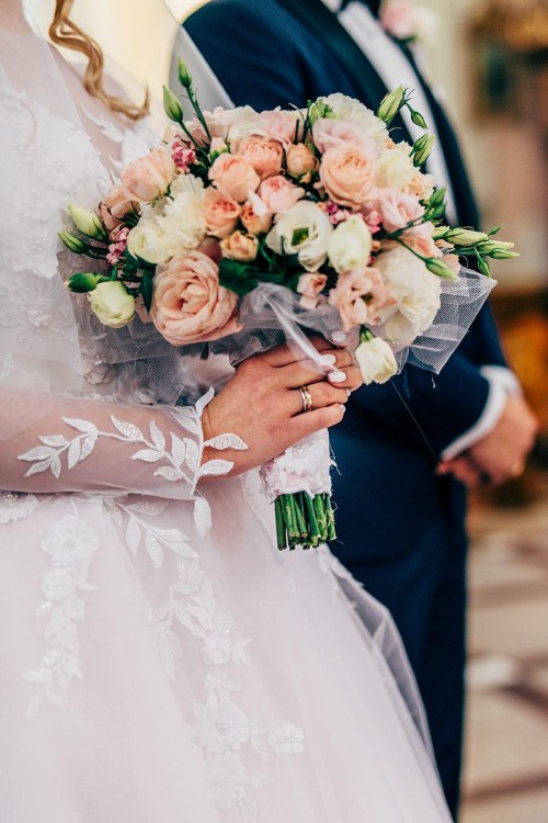 Subtelna i romantyczna suknia ślubna, rozmiar 36/38 przy wzroście 162-165 cm.