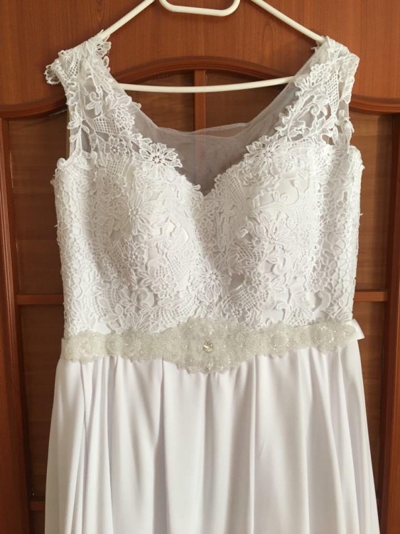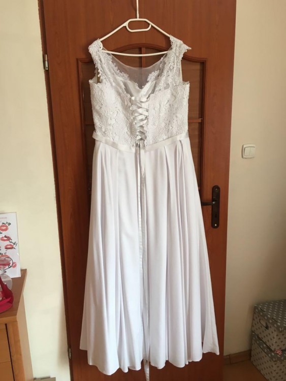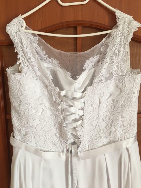 Witam, mam do sprzedania piękną suknie ślubną, szytą na miarę. Suknia jest śnieżnobiała, u góry pięknie zdobiona koronka, natomiast na dole uszyta z muślinu, który idealnie się układa. Tył gorsetu sznurowany, potrafi z każdej figury wydobyć talię. Idealny typ dla osób plus size 44-48. Serdecznie polecam, suknię zakupiłam za ok 3000,00 zł. Przetańczyłam w niej całą noc :)