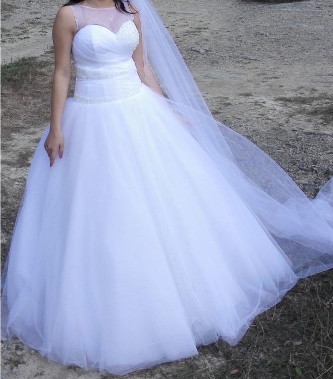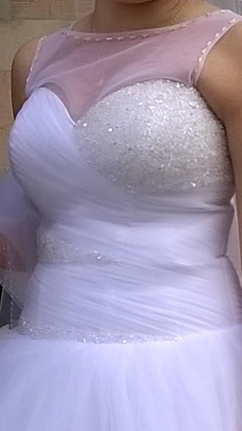 mam do sprzedania zjawiskową suknie ślubną z kolekcji MAJESTIC,marka IGAR. Suknia jednoczęściowa, uszyta w roz.38 posiada regulację w postaci wiązani, dającą możliwość indywidualnego dopasowania. Wyjątkowa- uszyta ze śnieżnobiałego tiulu, gorset wykończony pięknie mieniącymi się kryształkami Swarovski. Dodatkowo do gorsetu jest doszyta "koszulka" z tiulu zapinana z tyłu na guziki i obszyta koralikami. Możliwość jej odprucia. Dół oparty jest na regulowanym kole, dzięki któremu suknia nie haczy się o buty i rewelacyjnie układa się w tańcu. Suknia nadaje się do łatwego skrócenia, jest po profesjonalnym czyszczeniu. Ubrana dwa razy, w dniu ślubu oraz sesję zdjęciową.