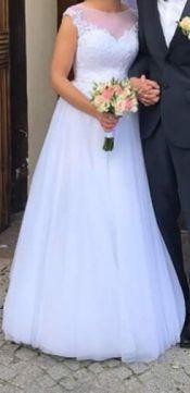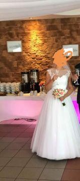 Sprzedam suknię ślubną raz założona rozmiar 38, suknia w stanie bardzo dobrym.