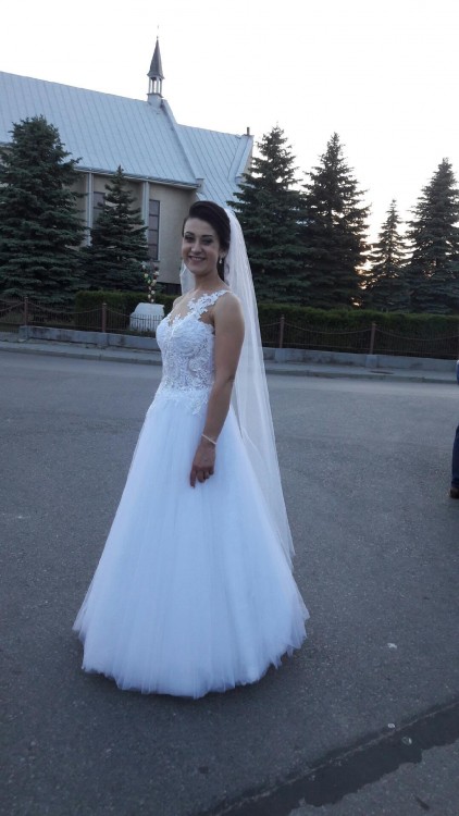 Sprzedam zjawiskowa suknie slubną zakupiona w salonie Impresja w Rzeszowie ,model SHAKIRA Kosztowala 2700zl .Zapinana na guziczki,ma wszyte miseczki od stanika.Jest bardzo lekka.Jednym mankamentem jest dwie male dziurki prawie nie widoczne.Dodaje do niej kolo oraz welon.Szyta byla na wzrost 163.Buty mialy wysokosc 10 cm.Obwód w biuscie 86/87.Obwód zaraz nad pasem72. Zainteresowane osoby prosze o kontakt pod nr 788563268.