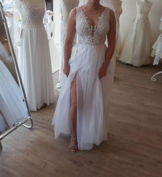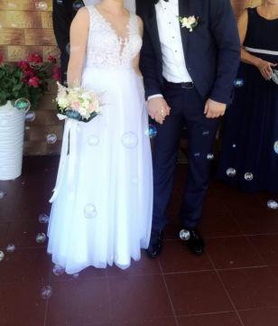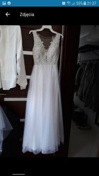 Sprzedam suknie ślubną kupiona w salonie Agnes najnowsza kolekcja Bridal Dream 2018 model 17070 (góra) dól sukni model TO-781. Suknia szyta na miare na rozmiar ok. 36 wzrost 165 cm + wysokość obcasa 10 cm. Suknia ma wszyte poduszki Push-up (delikatny) dodatkowo subtelności nadaje sukni rozporek.