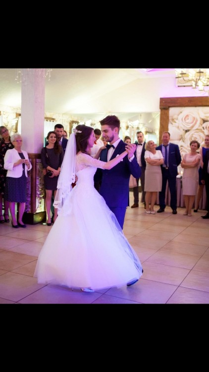 Suknia ślubna typu prinsessa. Gorset koronkowy zapinany na guziczki. Pięknie zdobiony cekinami.