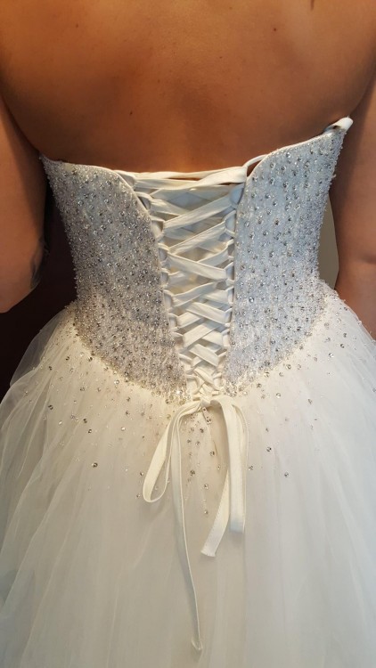 Sprzedam suknię slubną princessę firmy Anabell świeżo przywiezioną z pralni,bez żadnych przebarwień.Założona w dniu ślubu i w trakcie sesji zdjęciowej.Suknia jest koloru Ivory.Góra sukni gorsetowa cała zdobiona kamyczkami swarovskiego.Dodatkowo do gorsetu została wszyta taśma podtrzymująca dzięki czemu nie zsuwa się ona.Do sukni osobno koło a dół sukni składa się z kilku warstw tiulu dzięki czemu pięknie się układa.Suknia zrobiła ogromne wrażenie na gościach.Jest regulowana wejdzie w nią Pani o rozmiarze S/M.Ja noszę rozmiar S i miałam gorszet maksymaknie związany,szyta na wzrost 160cm plus obcas.Suknia posiada niewielkie dziurki tiulu które są naprawdę niewidoczne,dlatego taka cena.Możliwość przymiarki w Łaziskach Górnych niedaleko Mikołowa.Cena do niewielkiej negocjacji