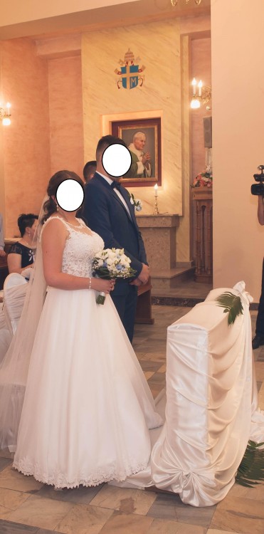 Sprzedam suknię ślubną kupioną w salonie Erica w Krośnie w rozmiarze 40-42. Suknia szyta na cieniutkim gorsecie na wiązanie, dzięki czemu idealnie dopasowuje się do sylwetki. Jest bardzo lekka i wygodna, posiada koło, które można wyciągnąć, pięknie układa się w tańcu. Suknia po praniu chemicznym. Cena zakupu to 2800 zł -sprzedam za 1400 zł gratis dwa welony, jeden długi sięgający do ziemi, drugi krótki do pasa. Serdecznie zapraszam do kontaktu :)