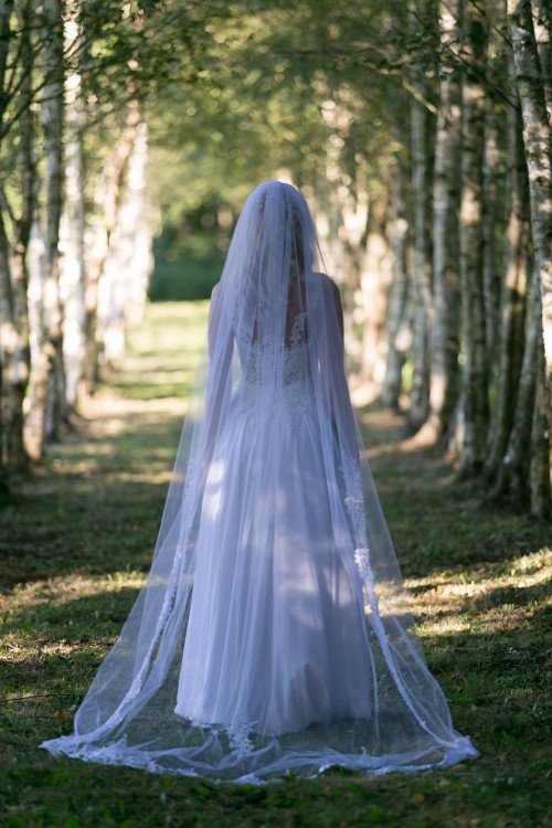 Posiadam również lekki, pięknie prezentujący się welon (2,5m) obszyty koronką, widoczny na zdjęciach.