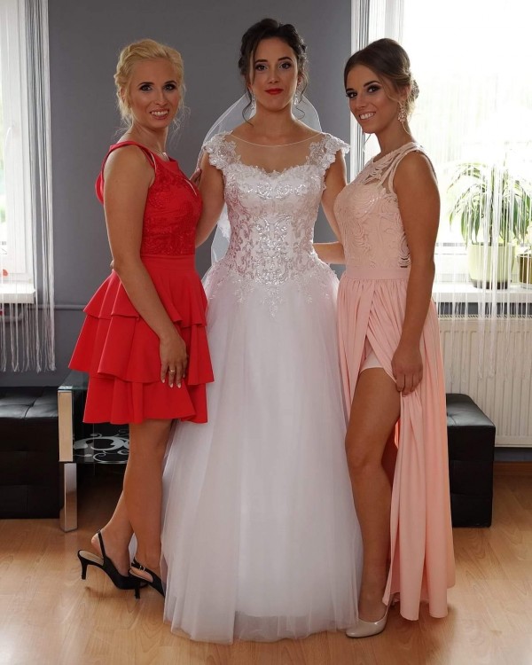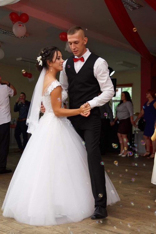 Sprzedam suknię ślubną. Bogato zdobiony gorset na ramionach, tył wiązany(świetnie dopasuje się do każdej sylwetki). Suknia kupiona nowa natomiast tiul został poszarpany stąd niska cena(tiul można wymienić w salonie). Do sukni dodatkowo welon i koło w cenie, w gratisie spódniczka biała tiulowa którą miałam na poprawinach. Więcej szczegółów pod num. Tel.