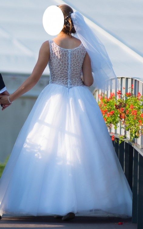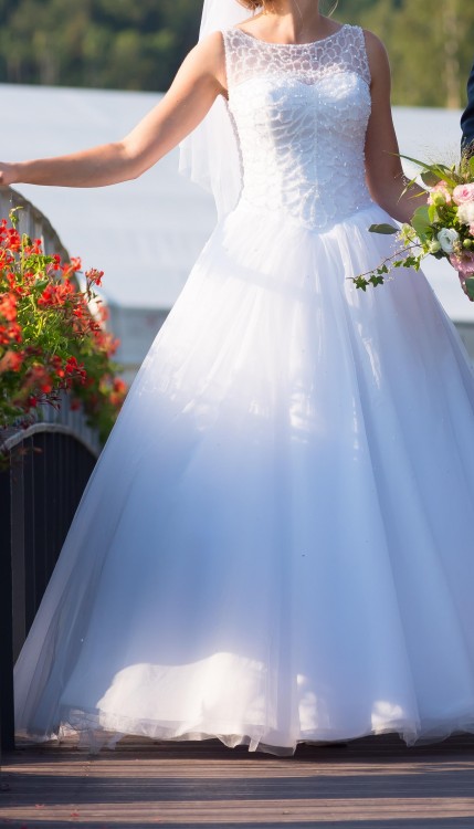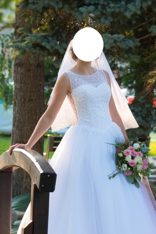 Mam do sprzedania piękną suknię ślubną w rozmiarze 34/36, mój wzrost 164 cm plus 5 cm obcasy. Suknia z pięknymi zdobieniami u góry, zapinana z tyłu na guziki, dół wykonany na kole. Mogę dołożyć welon zdobiony cekinami oraz ozdoby do włosów. Więcej informacji pod nr tel 660820616, okolice Ustronia.