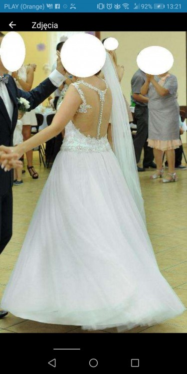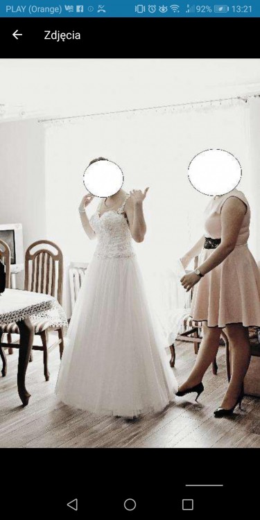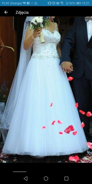 Witam, mam na sprzedaż przepiękną białą suknię ślubną typu księżniczka. Suknia szyta według własnego pomysłu. Robi niesamowite wrażenie. Gorset bardzo bogato zdobiony, dół ma kilka warstw materiału. Góra sukni ma siateczkę w kolorze cielistym - dzięki temu nie jest ona widoczna. Do sukni dołączona jest halka z kołem. Rozmiar sukni 38/40 szyta na wzrost 170 + 6cm obcas (później ubrane płaskie buty). Suknia w stanie bardzo dobrym, wyprana w pralni.