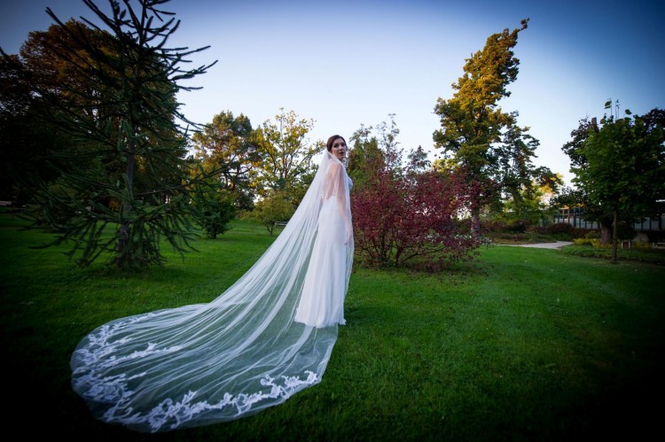 Dodatkowo do sukni dołączam GRATIS welon, który pełni rolę trenu. Uszyty przepięknie z tiulu i koronki, która idealnie dopełnia całość. Welon był szyty na miarę w salonie Magdaleny Carter.