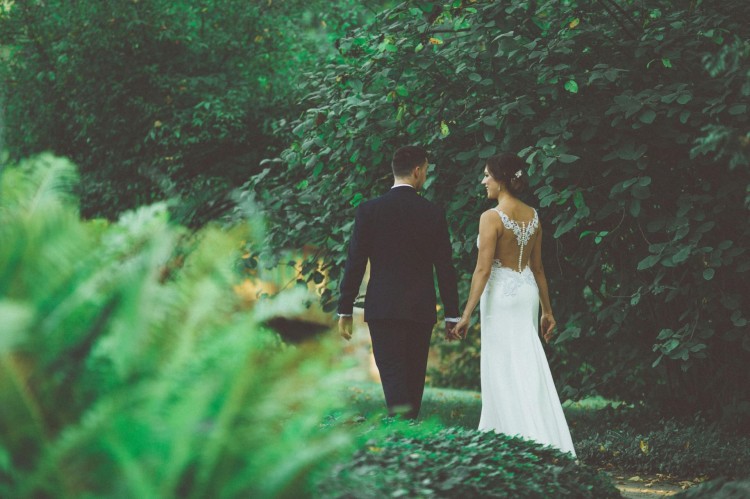 Na plecach znajdują się guziczki i koronka w górnej części co powoduje, że plecy są pięknie wyeksponowane. Suknia subtelnie podkreśla talię i bardzo dobrze leży.