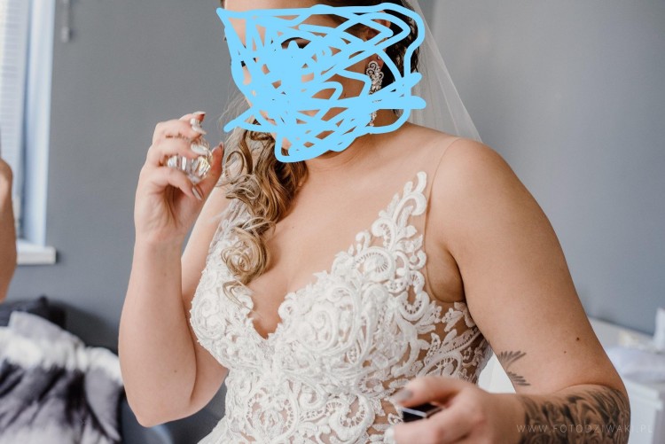 Do sukni dołączam 3 m welon na grzebyku. zapraszam na przymiarki. Rewelacyjnie prowadziła się w tańcu. Suknia kupiona w salonie Madonna w Katowicach