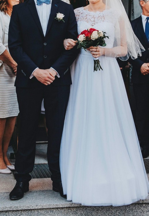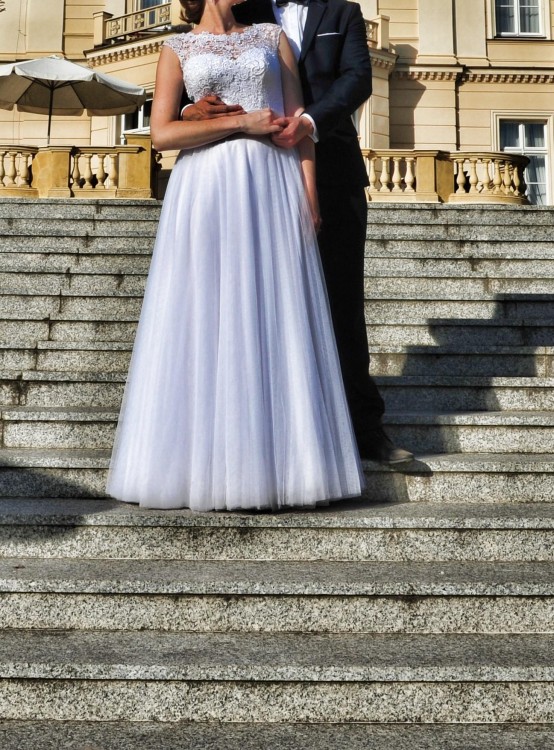 Sprzedam suknię ślubną marki Margarett model Adela - lekko przerobioną. Ma zabudowane plecy. Suknia uszyta w salonie sukien ślubnych w Koninie na wzrost 176+ obcas 6cm. Góra wykonana z gipiury do tego miękki gorset, dół z 3 warstw tiulu+ podszewka. Bardzo wygodna i lekka. Pięknie układa się w tańcu. Kolor biały. Można obejrzeć w Bydgoszczy lub okolicach Sompolna.