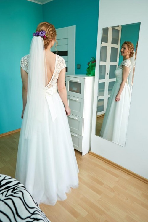 Suknia bardzo gustowna, wywierająca ogromne wrażenie na gościach. Bardzo wygodna, pięknie układająca się w tańcu. Opcja wyciętych pleców dodaje sukni dodatkowej elegancji.