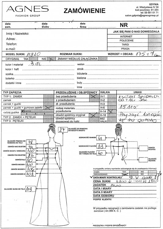 Suknia ślubna kupiona w salonie Agnes szyta na miarę.