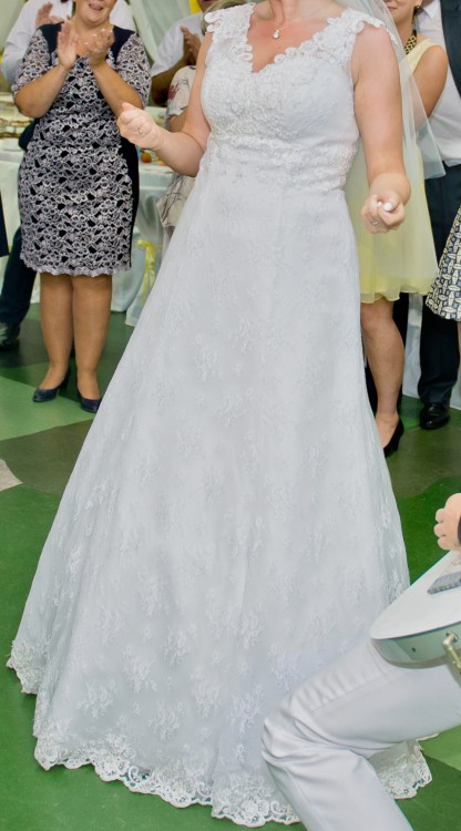 Czułam się w niej wspaniale i szczerze mogę polecić w szczególności Paniom, które lubią się bawić. Brak trenu powoduje, że sukienka przepięknie się kręci i nie trzeba jej podpinać (do kościoła i na sesję miałam ubrany długi welon, który z powodzeniem zastąpił tren i z łatwością można było go zdjąć przed tańcem :))