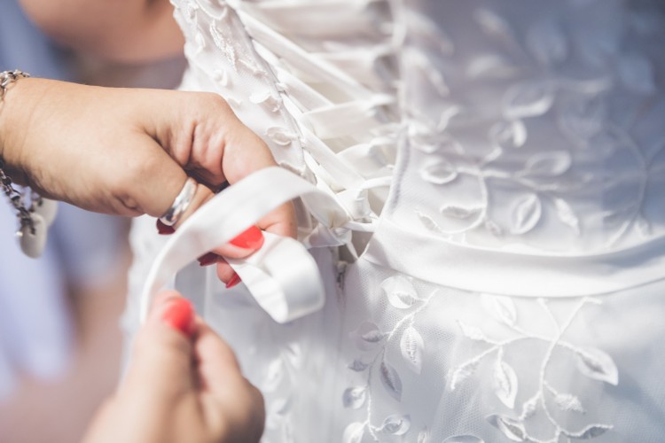 Czas na odsprzedaż mojej sukni ślubnej! Myślę, że wszystko co trzeba widać na zdjęciach, suknia jest na kole (obecnie chyba koło znajduje się w piwnicy, bo po wojażach wypadało ;) ale myślę, że to kwestia wsadzenia go w tunel, w najgorszym wypadku wymiany na nowy), z gorsetem sznurowanym na plecach, w przepiękny wzór listków. Kolor śmietankowy. Prezentuje się przepięknie, na pewno jest to coś dla osób, które nie przepadają za koronkami, ale gładka suknia to dla nich nie to. Dekolt łódka, rękawek lekko opada. Rozm. ~40.