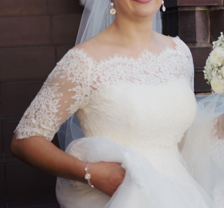 Na sprzeadż suknia slubna zakupiona w salonie sukien ślubnych AGNES Poznań w2017. Kolor ecru.