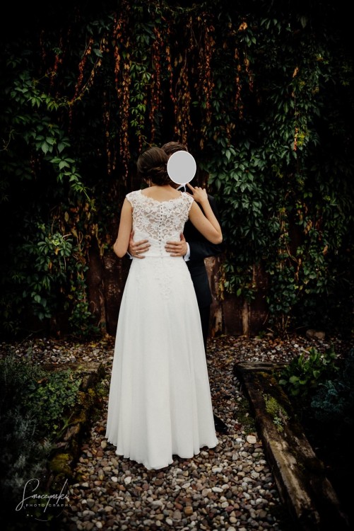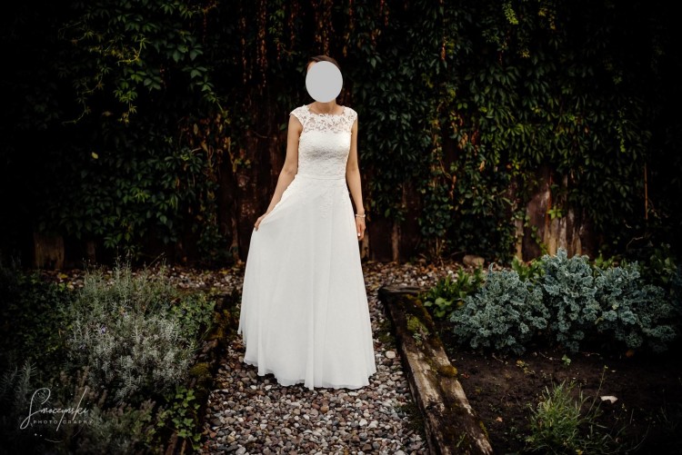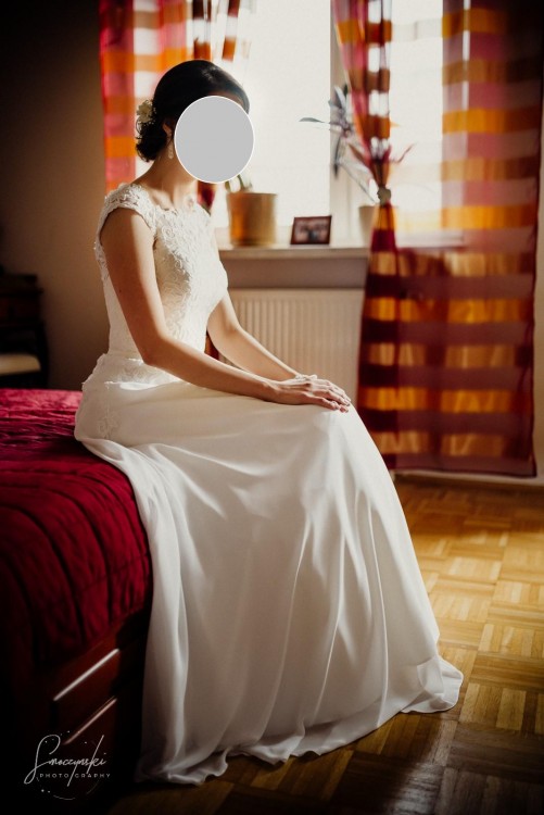 Suknia jest bardzo wygodna i lekka, koronka nie obciera po pachami, ma wszyte miseczki, zapinana na guziczki i suwak.