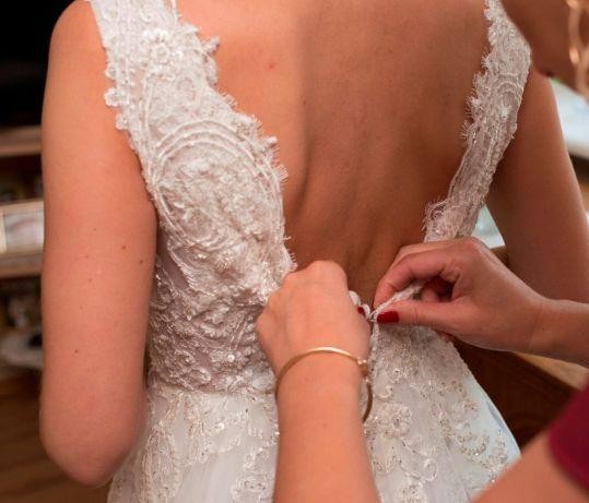 Suknia jest w kolorze Ivory.