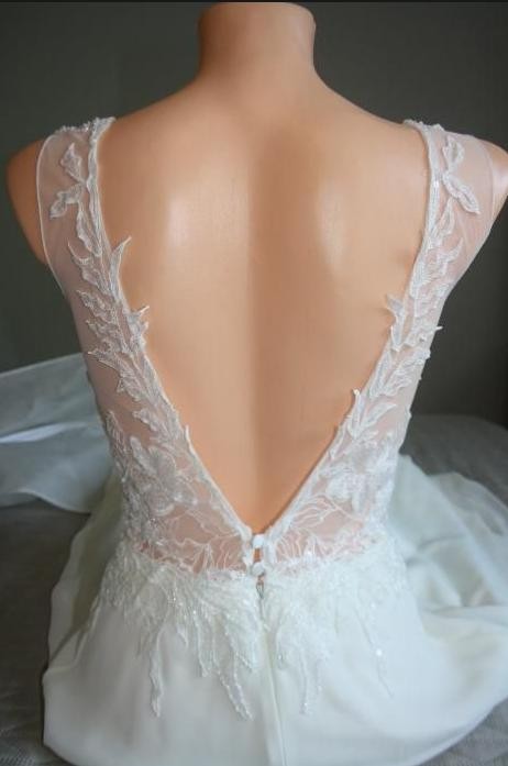 Suknia ślubna Agnes zwiewna kwiaty romantyczna bez pleców - rozmiar 36