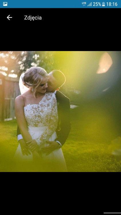 Robi ogromne wrażenie, jest przy tym bardzo wygodna, pięknie układa się podczas tańca. Suknia jest wyczyszczona chemicznie, posiada drobne ślady użytkowania przy dole spódnicy, można ją też śmiało skrócić lub zmniejszyć. Spódnica posiada zwiewną podszewkę, plecy siateczkowe zapinane na guziczki, w biuście wszyte cieliste miseczki. Cena katalogowa 5800 zł. Do sukni posiadam umowę, oryginalny pokrowiec. Dla zainteresowanych Panien Młodych mam jeszcze dodatkowo buty rozm. 38 oraz welon i biżuterię Novia Blanca