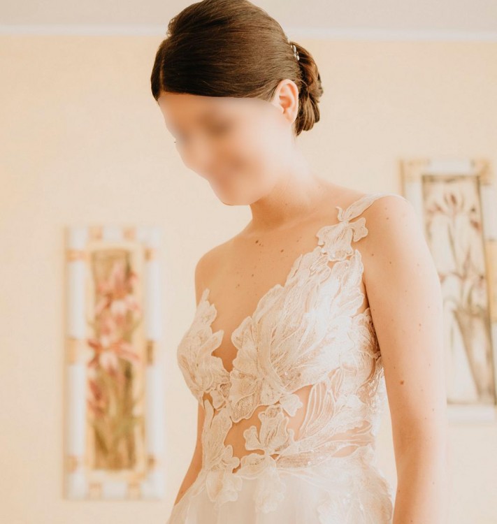 Suknia jest bardzo wygodna, uszyta z włoskiego tiulu, który jest delikatny i lekki.